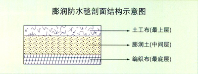膨潤(rùn)防水毯是一種專門用于人工湖泊水景、垃圾填埋場(chǎng)、地下車庫(kù)、樓頂花園、水池、油庫(kù)及化學(xué)品堆場(chǎng)等防滲漏的土工合成材料,它是由高膨脹性的鈉基膨潤(rùn)土填充在特制的復(fù)合土工布和無紡布之間,用針刺法制成的膨潤(rùn)土防滲墊可形成許多小的纖維空間,是膨潤(rùn)土顆粒不能像一個(gè)方向流動(dòng),遇水時(shí)在墊內(nèi)形成均勻高密度的膠狀防水層,有效的防止水的滲漏。